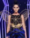 Quán quân Vietnam's Next Top Model 2011 diện trên người bộ trang phục hình cánh én được uốn bằng kim loại. > ![]() |
