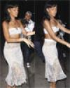 Nữ ca sĩ bốc lửa người Barbados tiếp tục phát huy phong cách ăn mặc không giống ai, khi diện trang phục hai mảnh với chiếc váy giống như khăn trải bàn, đi ăn tối tại Los Angeles, Mỹ hôm 17/5. > ![]() |