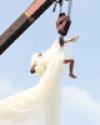 Bị dây cáp thít chặt vào người, thêm nỗi sợ độ cao từ bé, thí sinh Hoàng Thị Thùy của Vietnam's Next Top Model cảm thấy ngạt thở khi bị treo trên dây để tạo dáng chụp ảnh. > / ![]() |