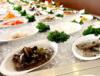 | Cơm gà và nấm hấp ống tre. |